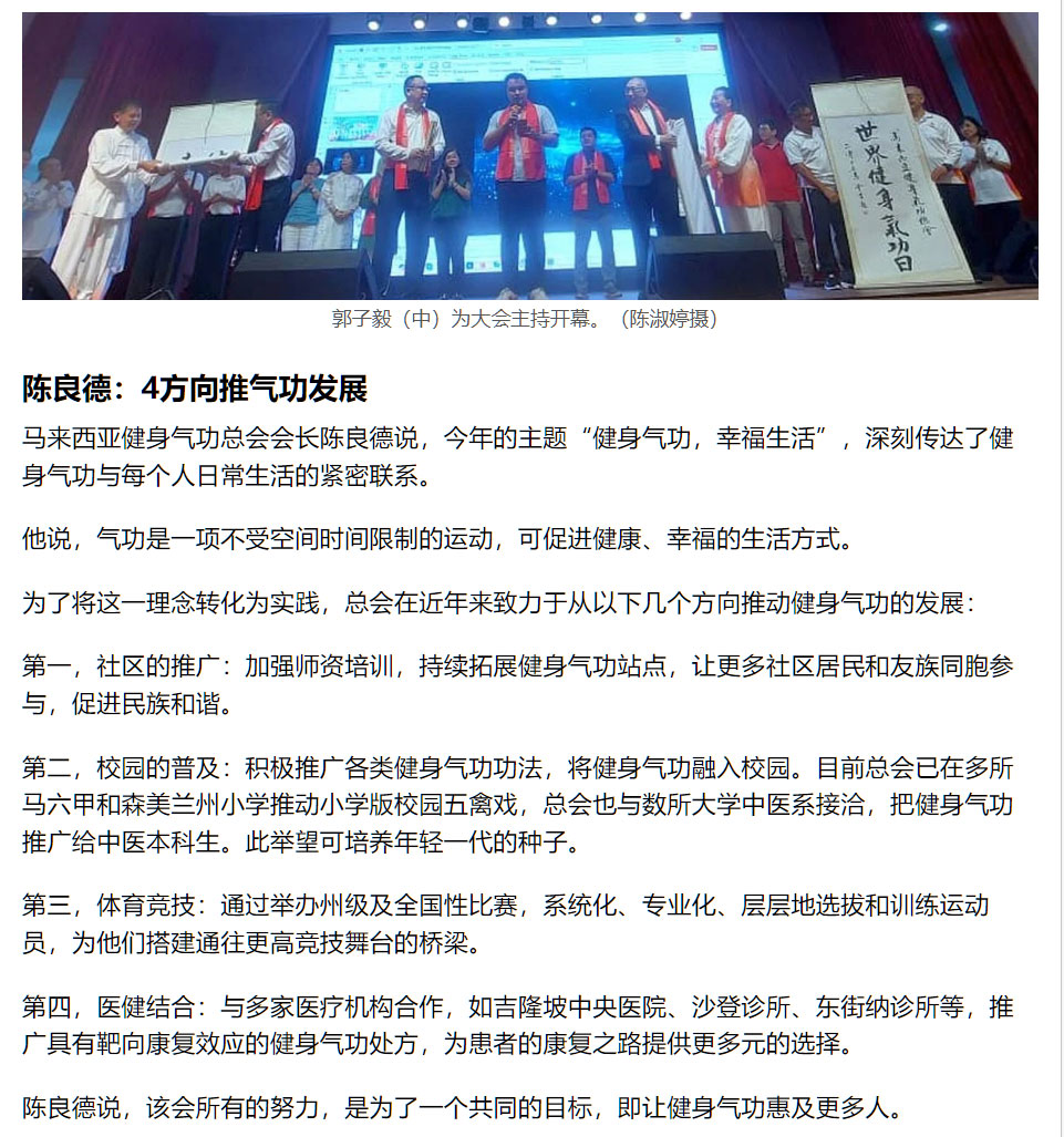 2024年3月31日 马六甲BS健身气功站近日来了一位特别习练者,那就是2018年肯亚世界小姐菲娜丽(Ms. Finali Galaiya)。 因为热爱中华文化,趁着来马六甲游玩时,特别来学习健身气功。接受训练后,已经相当熟练了“八段锦‘’。别看她小巧秀气,打起八段锦来动作舒展优美,功力十足。 大家可以从今天星洲日报报导的视频和新闻去感受一下 独爱中华文化 功架范儿十足 肯亚美姐旅马习气功 https://melaka.sinchew.com.my/?p=5498628 https://www.facebook.com/share/p/HoBG6xvKnAcCfhoZ/?mibextid=qi2Omg